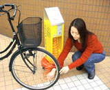 | 緑色のスタートボタンを押して下さい。 作動ランプが点灯し、約2分間自転車に空気を入れる事ができます。 |
