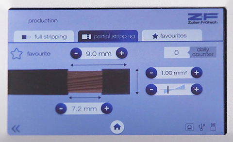 - 大きなカラー画面のストリップ図を見ながら、電線サイズやストリップ長を簡単に設定可。