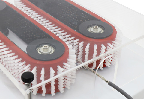 - 透明カバーになっており、状態が確認しやすく、又、作業者がブラシに当たるのを防止。